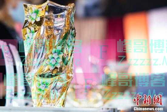 孟加拉国展台展示的一款玻璃花瓶。中新社记者 侯宇 摄