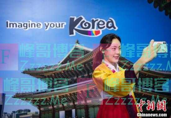 一名参会者在韩国展台体验特色服饰并自拍。中新社记者 侯宇 摄