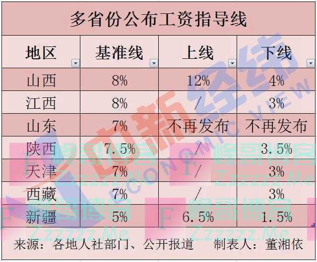 江西明确,2021年度企业工资增长基准线为8%;企业工资增长下线为3%;企业工资增长不设上线。