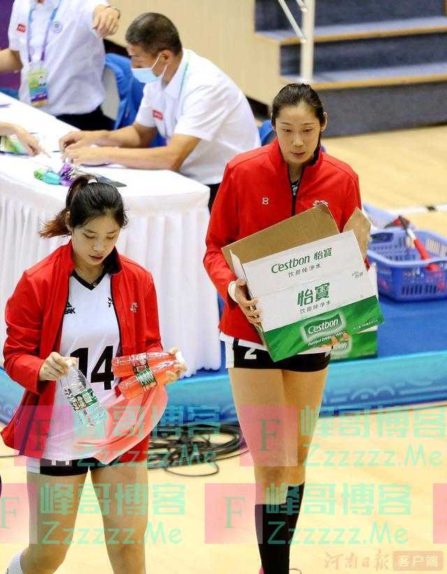 在当天的比赛现场,场边的朱婷不但会给队友们的每一次得分鼓掌、加油,还会连喊带比划地提示队友。暂停时间,更是会给队友支招打气,比赛双方交换场地时,甚至当起“搬运工”,帮队友搬送饮用水,“大婷”活脱脱变身“大姐婷”。