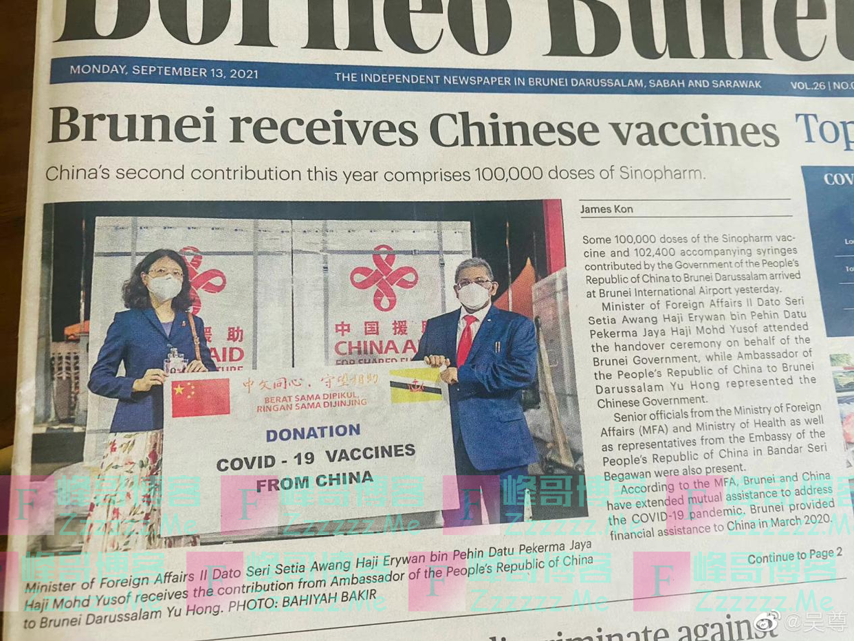 “致敬,感恩与骄傲…有你们这些英雄真好。”吴尊还写道。在微博中,他还贴出了自己接种中国新冠疫苗、与家人参观火眼实验室,以及媒体对中国援助文莱第二批新冠疫苗的报道等多张照片。