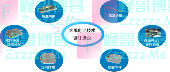 在核心技术方面,大禹电池技术有8项核心设计理念即:热源隔断、双向换流、热流分配、定向排爆、高温绝缘、自动灭火、正压阻氧、智能冷却,目前已获得数十项核心技术专利。