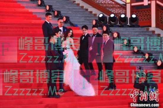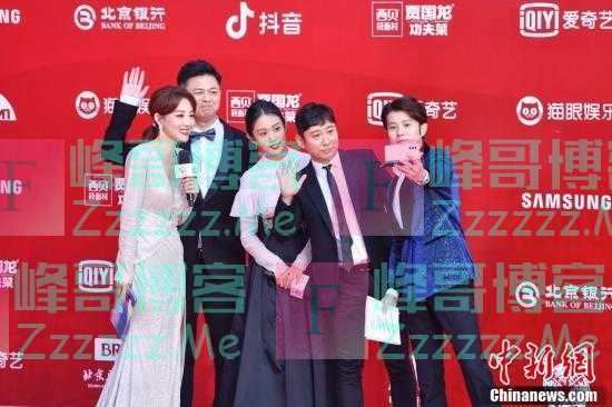 第十一届北京国际电影节开幕红毯主持人在与演员们自拍合影。