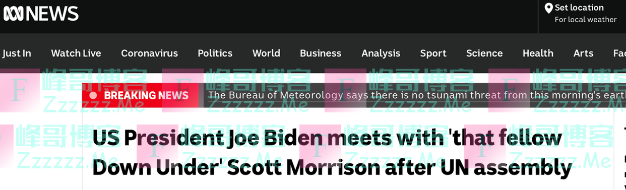 不光是网友,就连澳媒也还在耿耿于怀。澳大利亚广播公司在报道中使用了这样的标题:美国总统乔·拜登和“澳大利亚那个家伙”在联大之后会面。不过,这篇报道的内文却一句也没有提这则发生于几天前的“典故”。