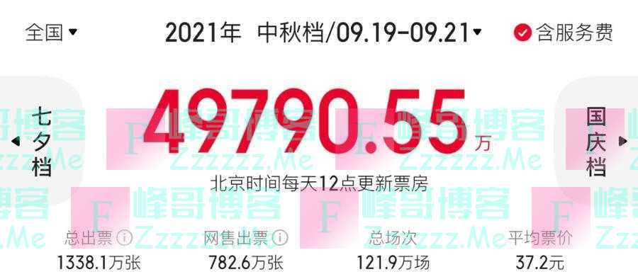 中秋档三天总票房4.9亿,温情领衔》发布于2021-9-23