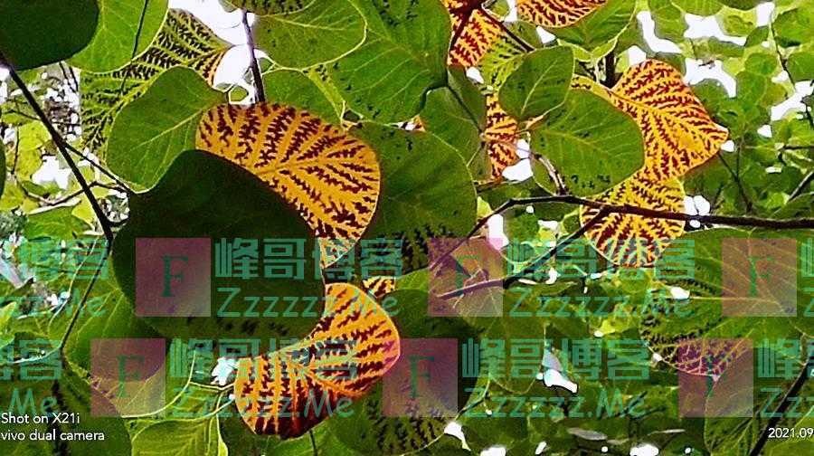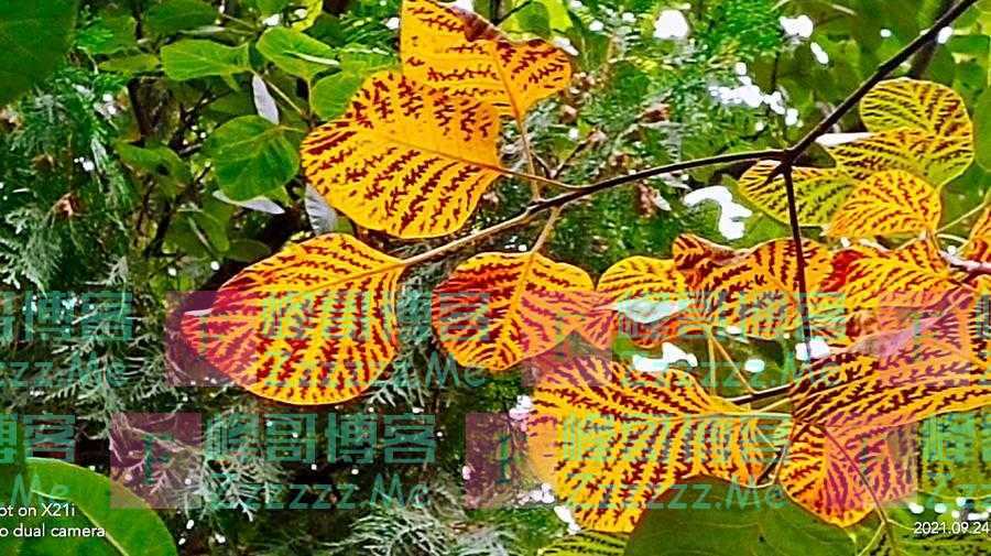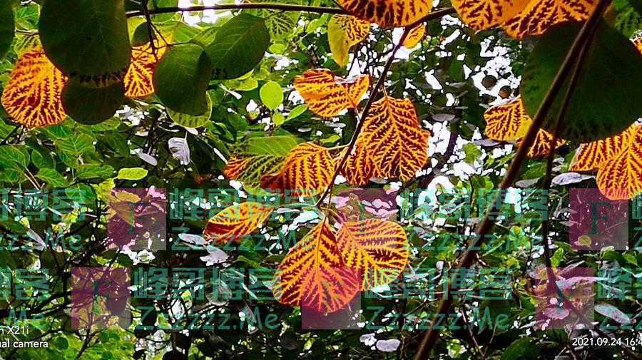 金黄色叶身,清晰的纹理,附着于枝干上,如同一只只美丽的蝴蝶。