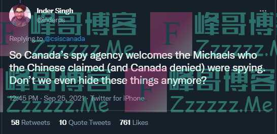 9月25日,在中国涉嫌间谍罪的加拿大公民斯帕弗和康明凯以取保候审返回加拿大。当天,加拿大情报机构发文欢迎他们“回家”。这操作楞是把很多推特网民看笑了。有加拿大人惊呼,难道我们都不隐瞒了吗?