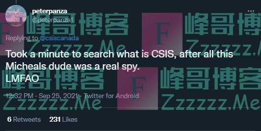 “花了一分钟搜索一下CSIS是啥,看来这两个迈克尔是真的间谍,笑死了”。