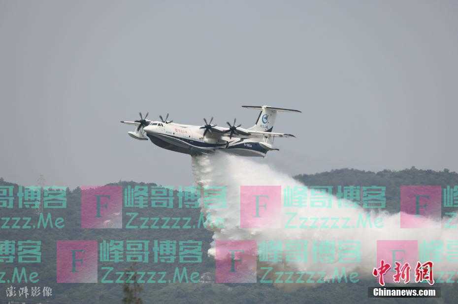 9月28日,广东省珠海市,鲲龙”AG600大型水陆两栖飞机进行飞行投水功能演示首秀。当日,第十三届中国国际航空航天博览会在珠海国际航展中心开幕。 中新社记者 陈文 摄