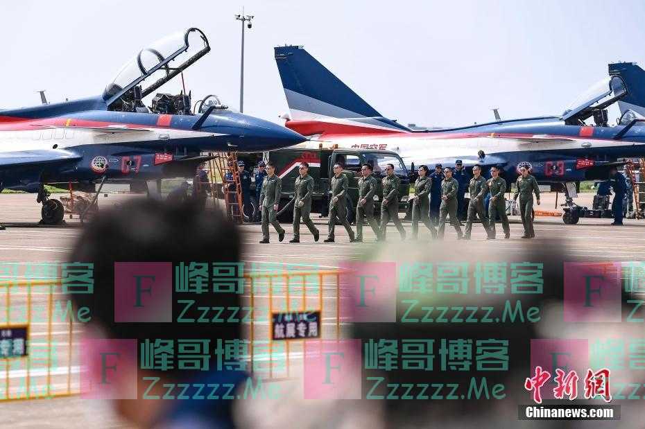 9月28日,广东省珠海市,中国空军“八一”飞行表演队驾驶员结束飞行表演后列队退场。当日,第十三届中国航展在珠海国际航展中心开幕。 中新社记者 陈骥旻 摄