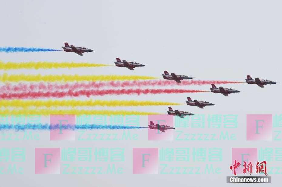 9月28日,广东省珠海市,中国空军“八一”飞行表演队进行飞行表演。当日,第十三届中国航展在珠海国际航展中心开幕。 中新社记者 陈骥旻 摄