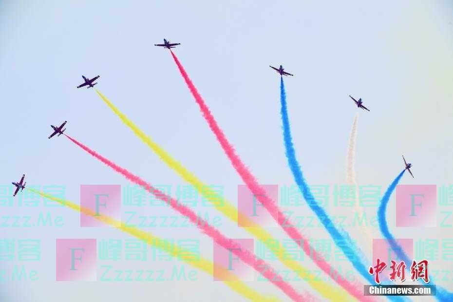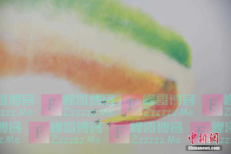 9月28日,广东省珠海市,中国空军“八一”飞行表演队表演特技飞行。当日,第十三届中国国际航空航天博览会在珠海国际航展中心开幕。 中新社记者 陈楚红 摄