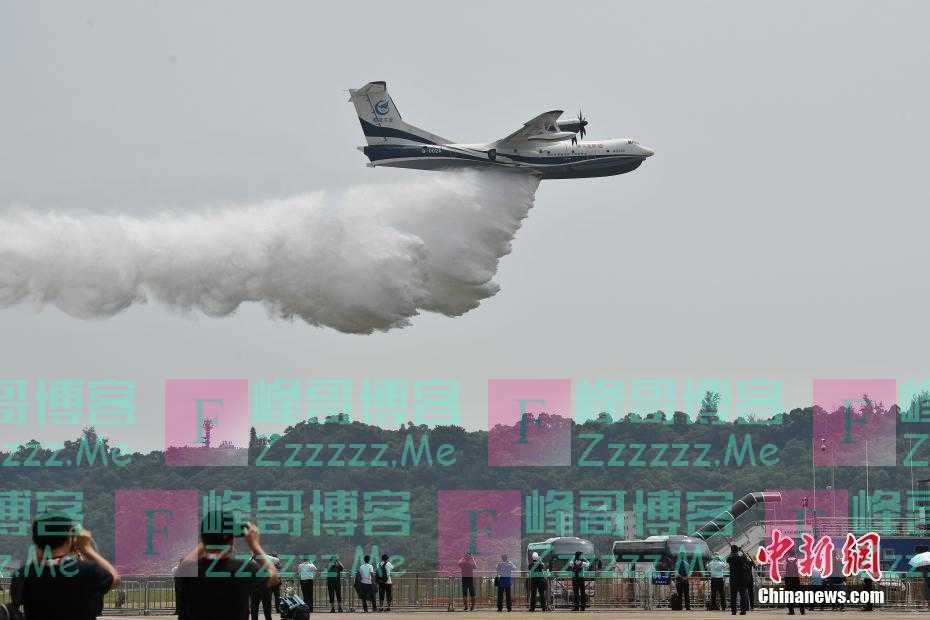 2021年9月28日,广东珠海,第十三届中国航展正式开幕。备受瞩目的AG600首次进行投水功能演示,展示飞机强大的火场灭火能力。 图片来源:IC photo