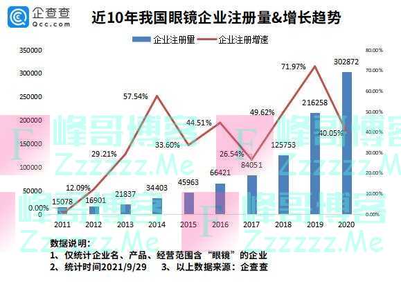 企查查数据显示,目前我国现存眼镜相关企业132.36万家。2019年新增眼镜企业21.63万家,同比增长71.97%,是近十年我国眼镜企业注册增长率最高的一年。2020年,我国新增眼镜相关企业30.29万家,同比增长40.05%,是近十年我国新增眼镜相关企业最多的一年。