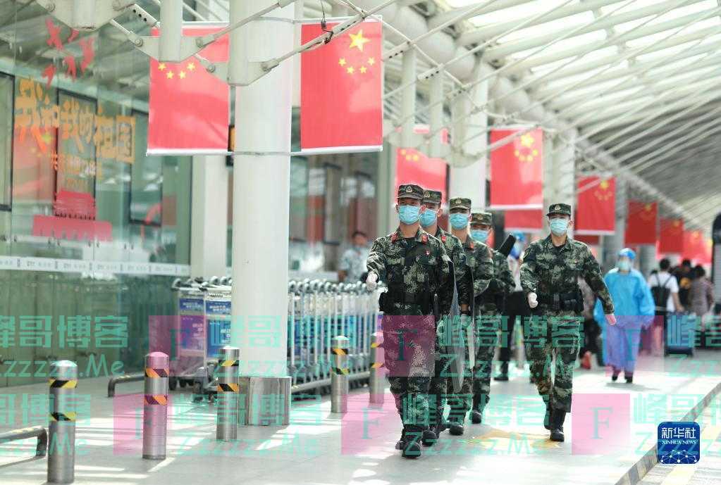 本文转自【新华网】; 10月1日,武警海南总队三亚支队官兵在三亚凤凰国际机场巡逻执勤。 新华社发(周奕 摄)