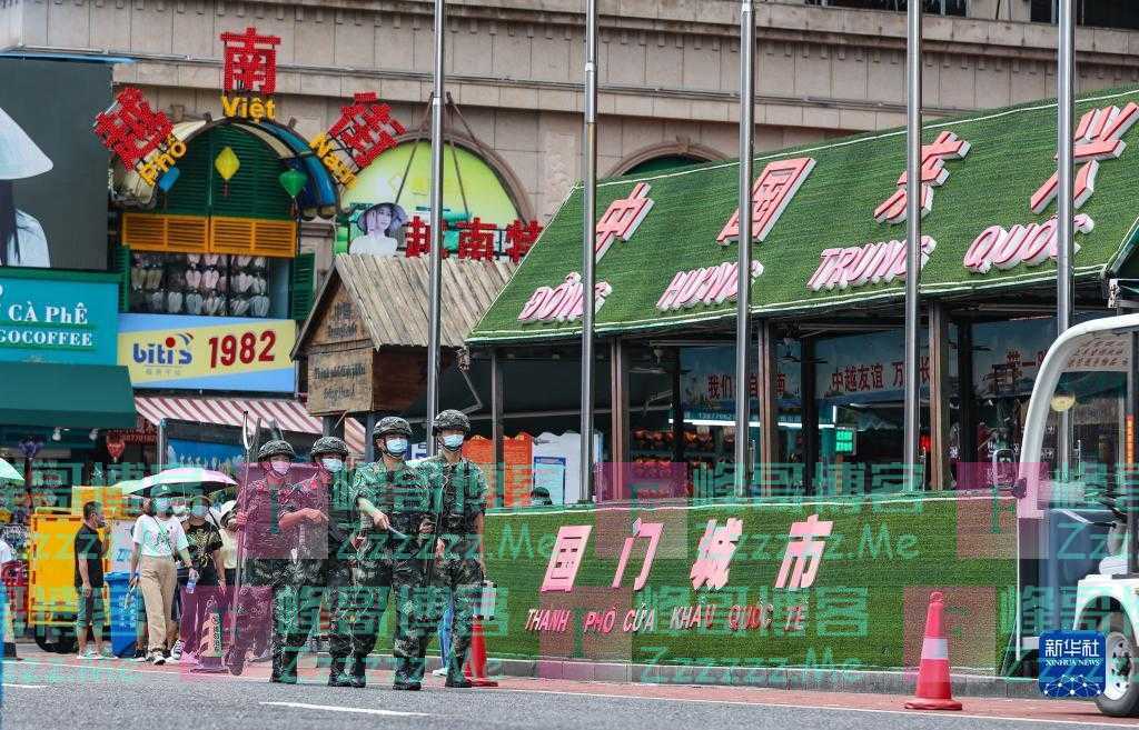 本文转自【新华网】; 10月1日,武警广西总队防城港支队官兵在边境贸易区巡逻执勤。 新华社发(徐世立 摄)