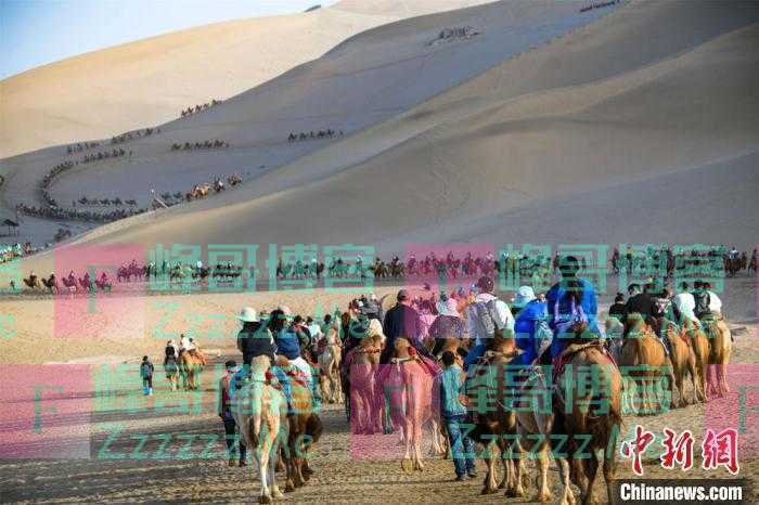 本文转自【中国新闻网】;国庆长假,敦煌鸣沙山下大漠驼队宛如“之”字长龙。 王斌银 摄
