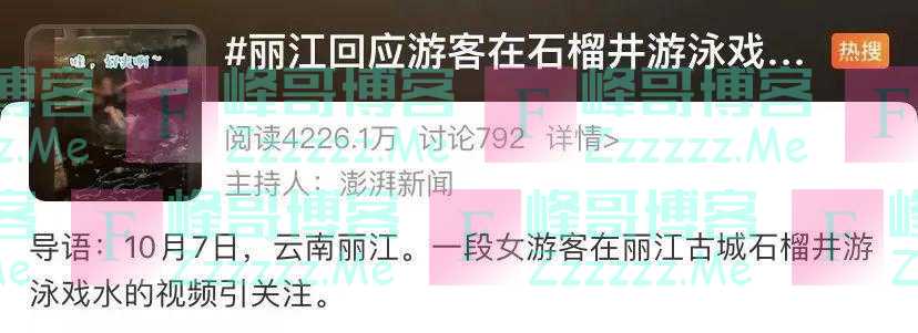 近日,一段女游客在丽江古城石榴井内,游泳戏水的视频引发了网友的关注。