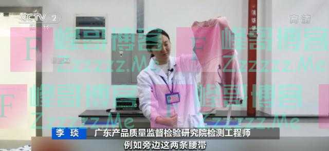 广东产品质量监督检验研究院检测工程师 李琰:这件童装看起来很漂亮,但是却存在安全隐患。例如旁边这两条腰带,这两条腰带过长,超过了服装底边,在松散的情况下容易绊倒。如果你坐电梯或者下车关车门,很容易被电梯门、车门卡住,也会形成一定的安全风险。