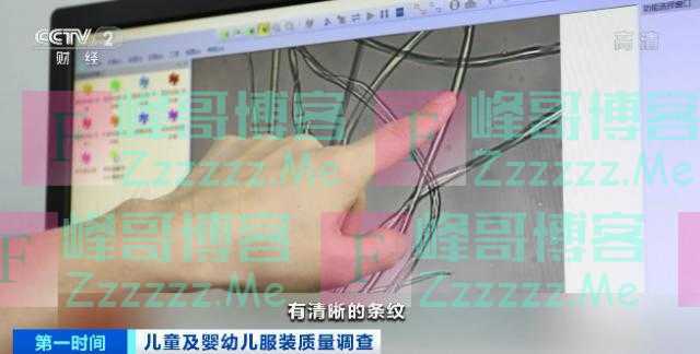 记者了解到,检测发现的不合格项目当中,有一个项目决定了纺织产品性能特点,直接影响着儿童及婴幼儿的舒适体验,这就是童装的纤维含量。检测发现标注是百分百棉的,可能里面掺杂了大量的化学纤维,标注棉为主要材质的实际上含量也达不到,像这款产品标签标注是百分百棉,可是在显微镜下却出现了两种纤维形态。