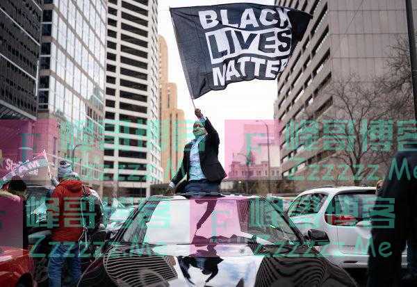 4月20日,美国民众手举写有“黑人的命也重要”的旗帜聚集在美国明尼阿波利斯市的法庭附近。新华社发(本·布鲁尔摄)