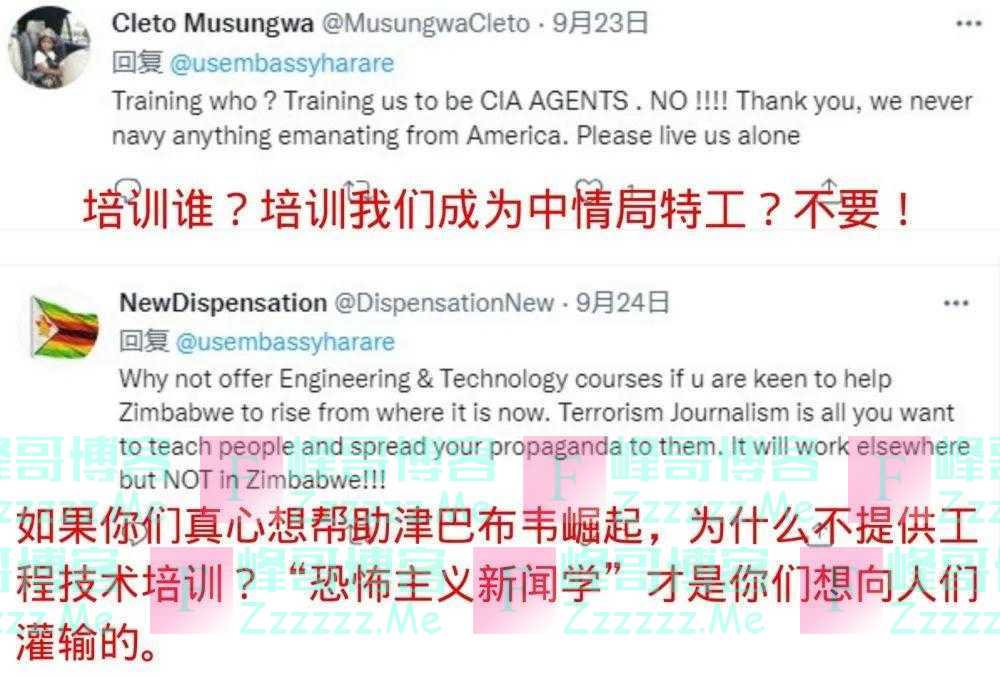 有网友在美驻津使馆推特账号下留言说,美国对当地媒体的所谓培训是“为中央情报局找线人”;还有网友认为,美国如果是出于真心,应该为津巴布韦提供工程技术培训,而不是出资灌输和宣传美国的“恐怖主义新闻学”。