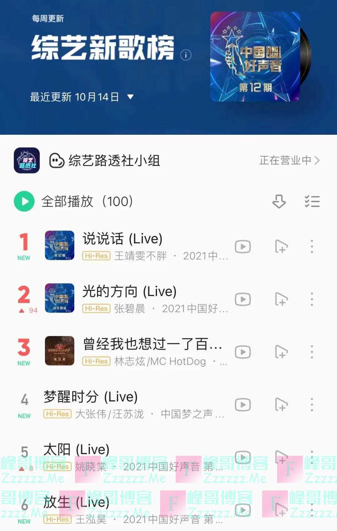 但几期播下来,运营编辑们意外发现,这档节目“似乎还能打”——平台热力值排到前三。10月15日,《2021中国好声音》收官,音乐平台的综艺新歌榜上,节目相关音源占据了TOP10中的半数席位。
