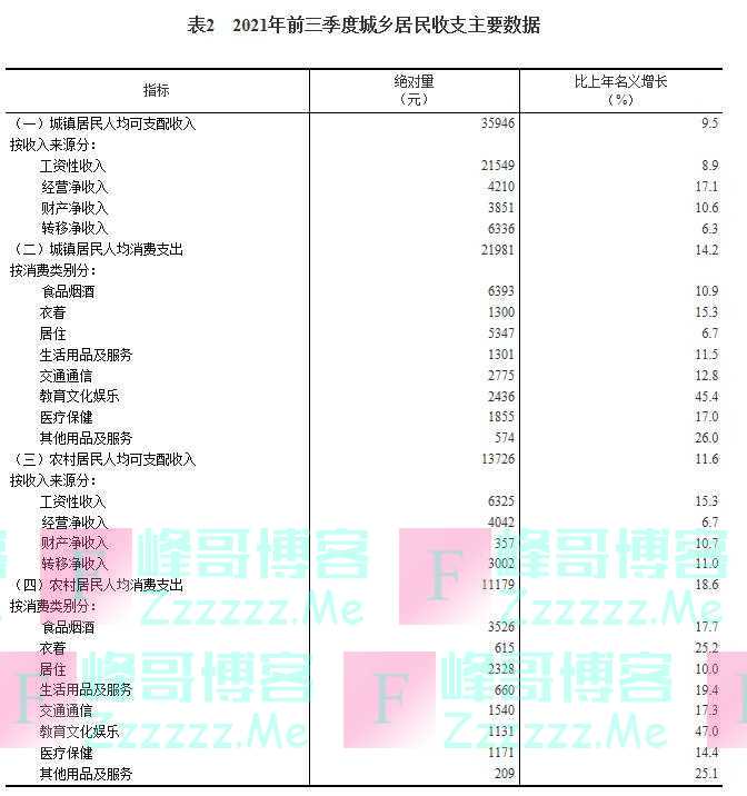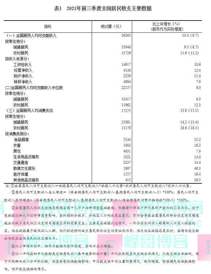 国家统计局:2021年前三季度全国居民人均可支配收入26265元》发布于2021-10-21