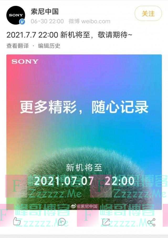图为6月30日,索尼中国在官方微博发布宣传微博