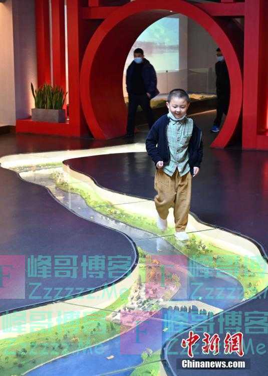 本文转自【中国新闻网】;10月22日,以“走向共同富裕的千年运河”为主题的2021中国大运河文化带京杭对话在浙江杭州开幕。在京杭对话开启前,“千年运河千里行”暨“著名摄影家”采风活动走进浙江杭州。图为10月21日,一名儿童从京杭大运河博物馆内的运河模型上走过。 中新社记者 毛建军 摄