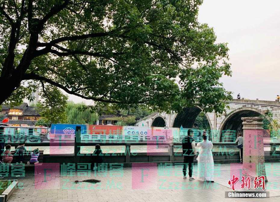 本文转自【中国新闻网】;10月22日,以“走向共同富裕的千年运河”为主题的2021中国大运河文化带京杭对话在浙江杭州开幕。在京杭对话开启前,“千年运河千里行”暨“著名摄影家”采风活动走进浙江杭州。图为10月21日,几位老人在杭州拱宸桥上拍照。 中新社发 张兆增 摄