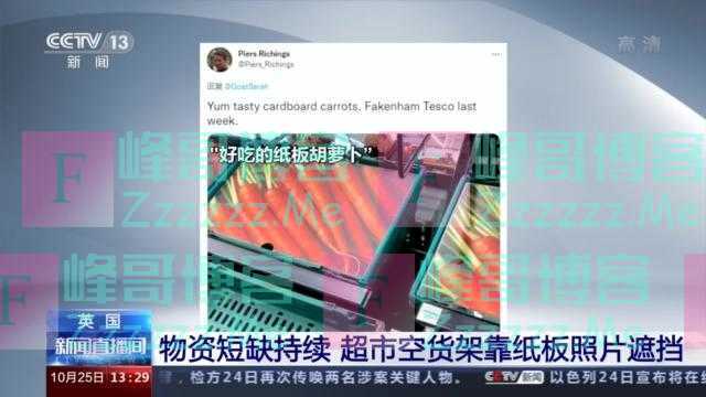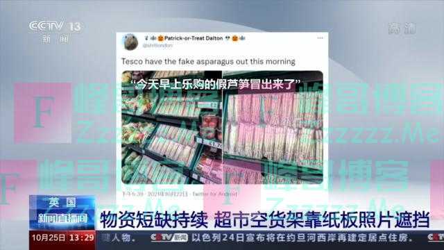 随着英国供应链危机的持续蔓延,英国很多超市陷入了商品短缺的窘境。据英国媒体报道,近日有购物者发现,为遮挡空荡荡的货架,英国多家大型连锁超市将印有蔬菜、水果照片的纸板摆在了缺货的货架上。