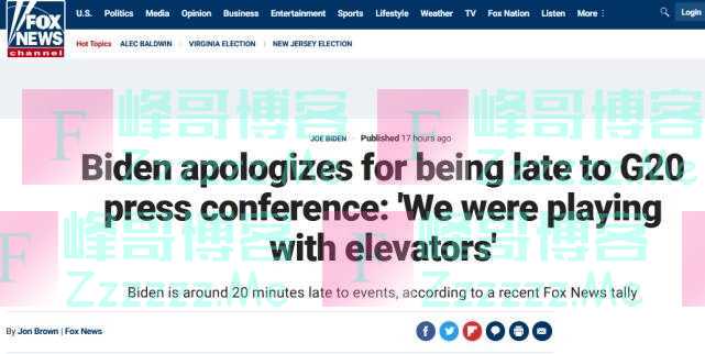 据福克斯新闻报道,当地时间10月31日,美国总统拜登在罗马举行G20峰会后的记者会。但由于迟到20多分钟,拜登当天道歉。