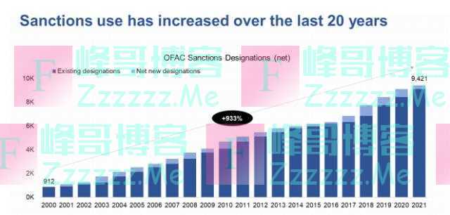 根据美国财政部上月发布的《2021年制裁评估报告》,自“9·11”事件以来的20年里,美国对他国实施的经济和金融制裁呈爆炸性增长,制裁对象从2000年的912个增加到现在的9400多个;同时,美国实施制裁的机构从69个增加到176个。