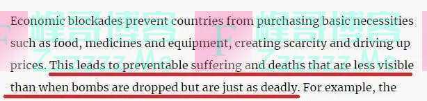 △美国“真相”网站:经济封锁使各国无法购买食品、药品和设备等基本必需品,造成物资短缺并推高价格。这会导致本可阻止的苦难和死亡,这些苦难和死亡虽不如炸弹投下时造成的后果那么明显,但同样是致命的。