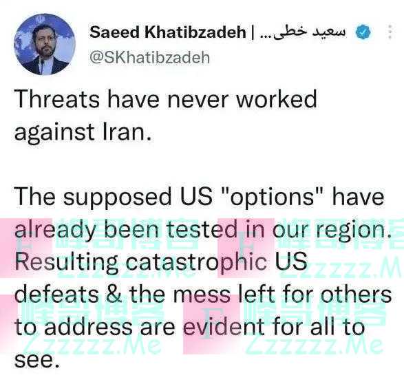 △伊朗外交部发言人哈提卜扎德当地时间2日在社交媒体发文说,美国所谓的“选项”已经在中东地区进行了测试,导致了其自身灾难性的失败以及需要其他人解决的烂摊子。美国对伊朗的威胁从未奏效。