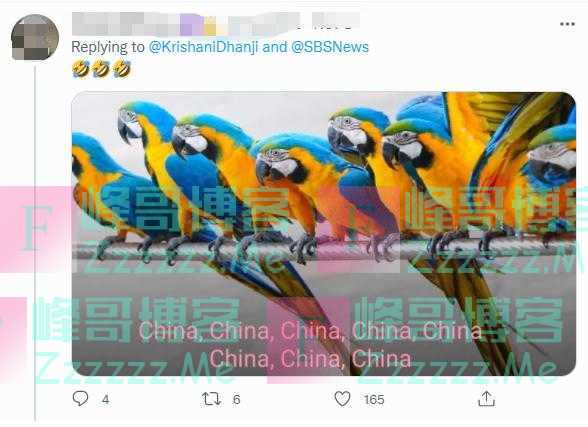 有网友对莫里森“满脑子China”予以嘲讽,形容好似一群鹦鹉在叽喳大呼“China”。