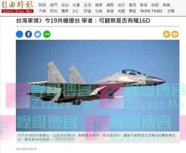 台湾媒体9月5日的文章标题就在猜测“扰台”歼-16战机中是否有歼-16D。