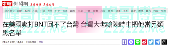 这个“台独”抱怨回不了台湾了,曾要求岛内年轻人勇敢打“高端疫苗”,自己却在美国打BNT》发布于2021-11-8