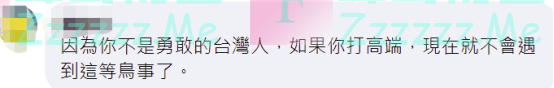 还有网友讽刺:“因为你不是‘勇敢的’台湾人,如果你打‘高端’,现在就不会遇到这等事了。”↓