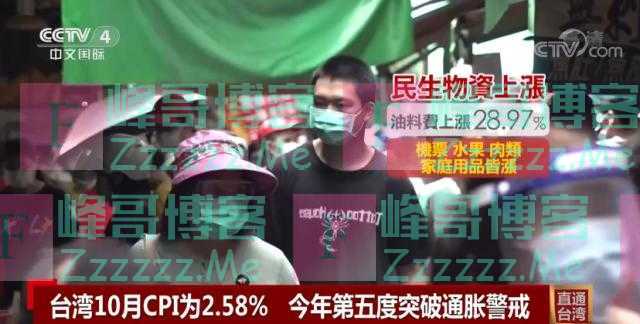 台当局行政主管机构“主计总处”日前公布的数据显示,台湾10月消费者物价指数(CPI)年增率达2.58%,是今年第五度突破2%的通胀警戒线。