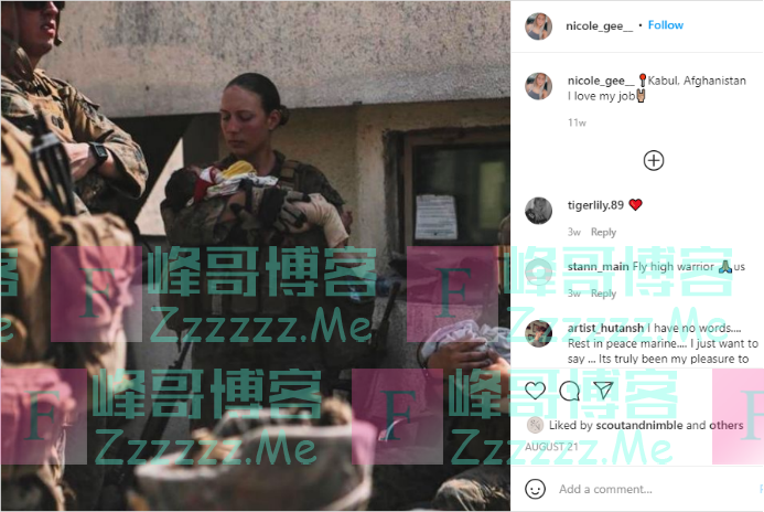 妮可·基伊的IG账号截图然而,《华尔街日报》发布的一篇评论文章显示,今年8月26日,喀布尔哈米德·卡尔扎伊国际机场附近发生了一场自杀式炸弹袭击。基伊不幸在此次事件中殉职。另外《纽约时报》和《卫报》在9月发布报道称,美国五角大楼承认,在今年8月29日发生的针对极端组织伊斯兰国(IS)轰炸机进行的无人机空袭中,美军误杀了10位阿富汗平民,其中包括7位儿童。