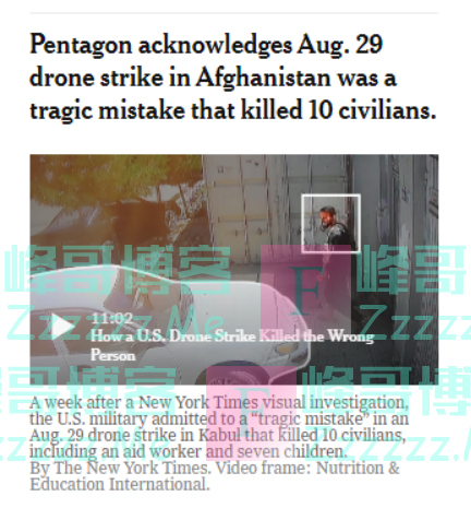该文章于2021年8月20日被发布在《纽约时报》官网上,内嵌有一段长达55秒的录像视频,其封面图与部分推特用户声称的与艾哈迈迪有关的最后一张照片几乎完全一致。视频下方的文字说明显示,该录像由路透社通过奥马尔·海达里(Omar Haidari)拍摄,展现了周四(2021年8月19日)当日喀布尔机场外人群聚集的画面,期间一位婴儿通过机场围栏被递给了一位美国士兵。