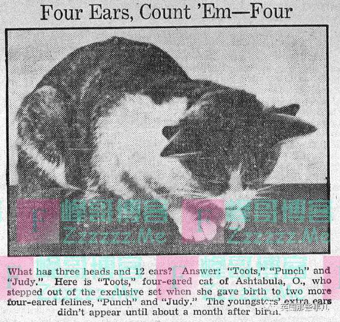 后来Toots又生下了两只四耳猫,Punch和Judy,从此四耳猫才慢慢为人所知。