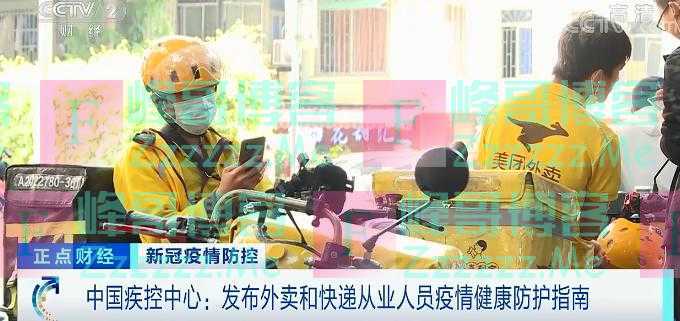 11月10日,中国疾控中心发布《外卖配送和快递从业人员新冠肺炎疫情健康防护指南》,从岗前防护准备、业务配送、分发环节等多个方面,为外卖配送和快递从业人员提供明确的健康防护指导。