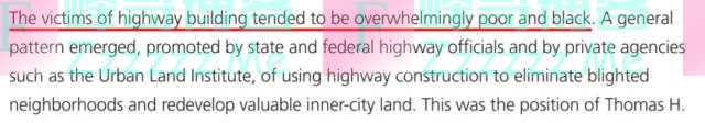 △《州际公路:1939 年以来的公路政治和政策》:高速公路建设的受害者大多是穷人和非洲裔。