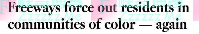 例如在休斯敦,居住在非洲裔和拉丁裔社区的1000个家庭可能会因高速公路扩建而被迫离开家园。就在半个世纪前,另一次高速公路建设也使数以万计的人从同一地区撤离,并摧毁了非洲裔商业区。