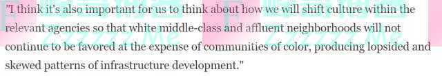 纽约大学法学院教授、美国公民自由联盟全国委员会主席黛博拉·阿彻指出,这10亿元如何落实还是个问题,想要解决州际公路中的种族问题面临重大挑战。当务之急,是改变相关机构内部的文化,使他们不再以牺牲有色人种社区利益为代价,继续优待白人中产阶级和高收入社区,这才是导致基础设施发展的不平衡和扭曲模式的根源。