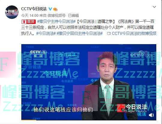 在今日播出的《今日说法》节目中,撒贝宁回归主持。