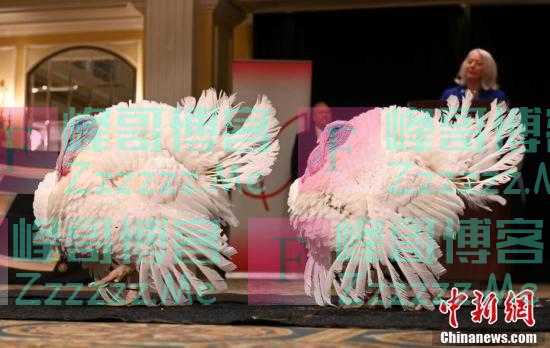 当地时间11月18日,两只将获得美国总统“赦免”的2021年感恩节“幸运”火鸡亮相华盛顿。